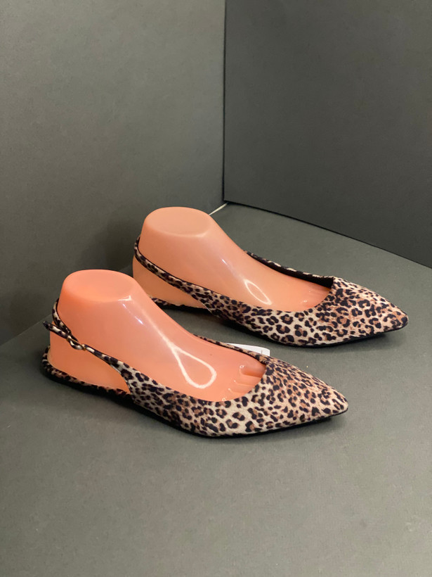 کفش مجلسی کف تخت طرح پلنگی بند قابل تنظیم انگلیسی