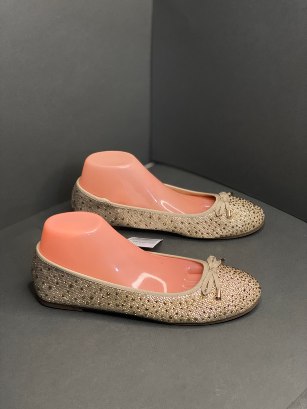 کفش عروسکی طلایی نگین دار جلو پاپیون انگلیسی