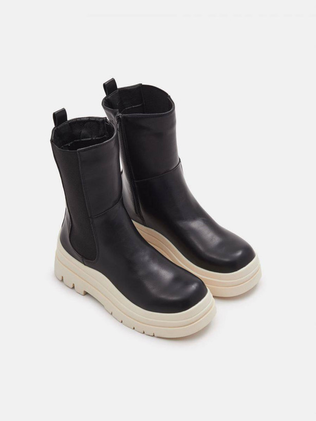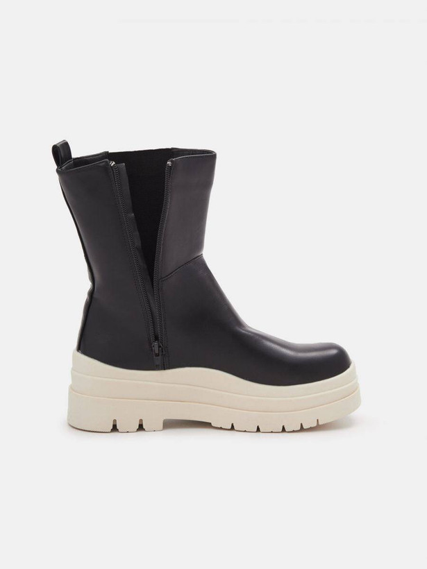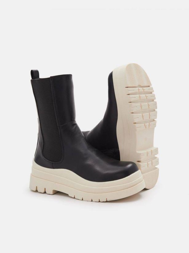 بوت چرم دو رنگ بغل زیپ زنانه لهستانی