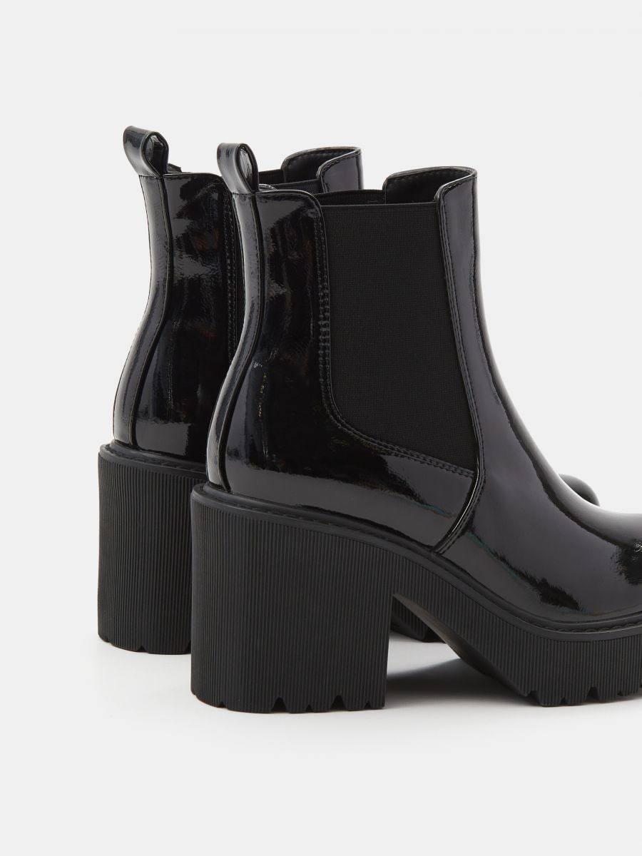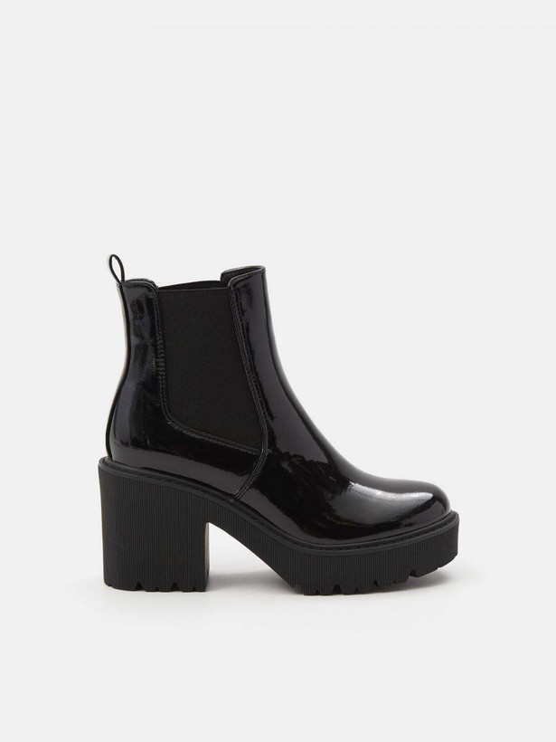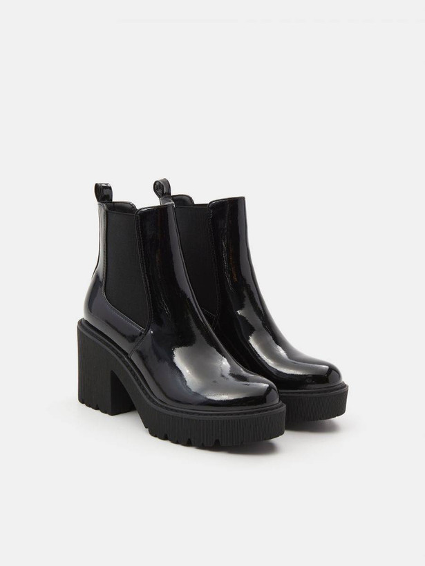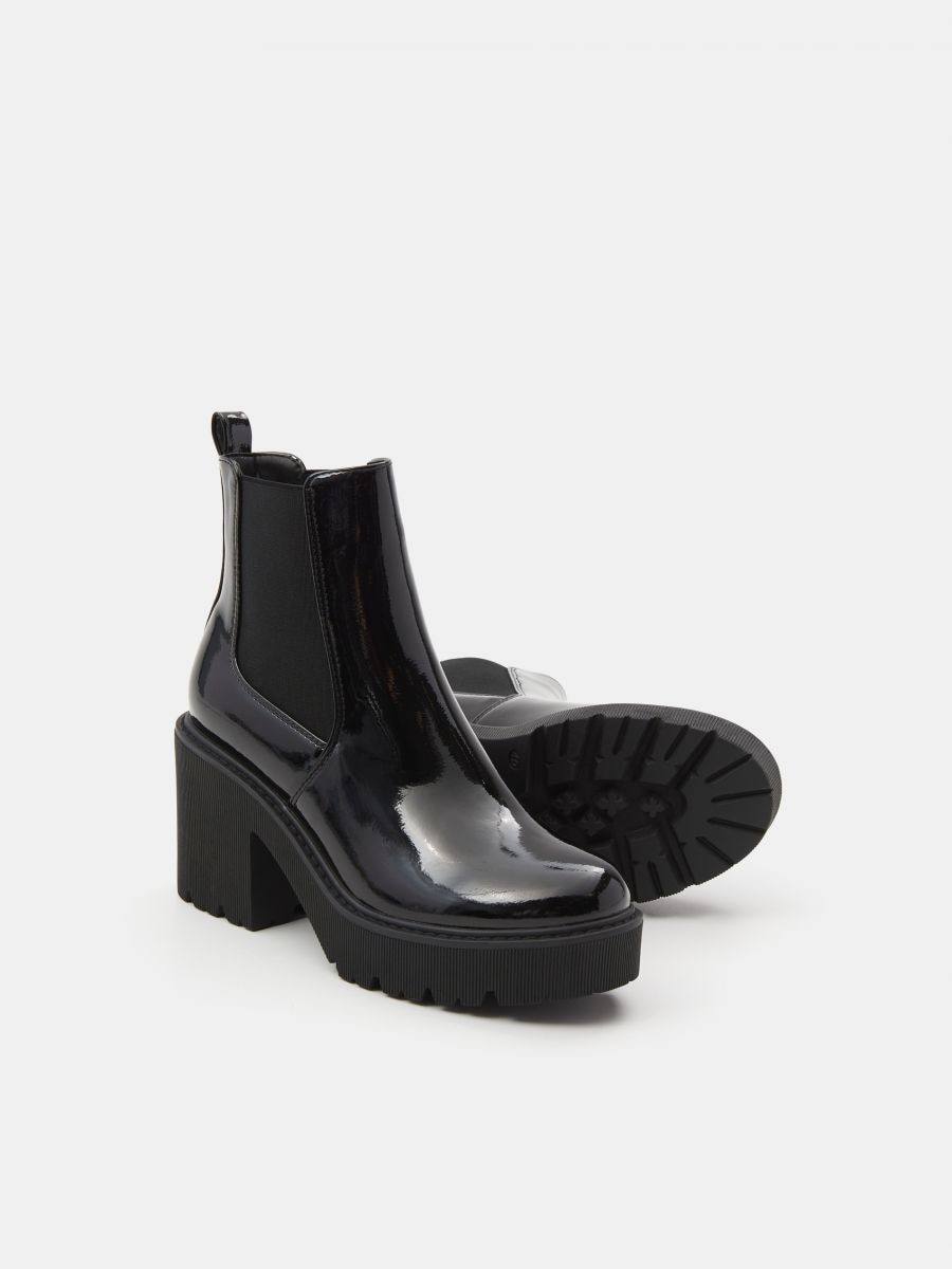 نیم بوت چرم براق زنانه پاشنه بلند و بغل کشی لهستانی