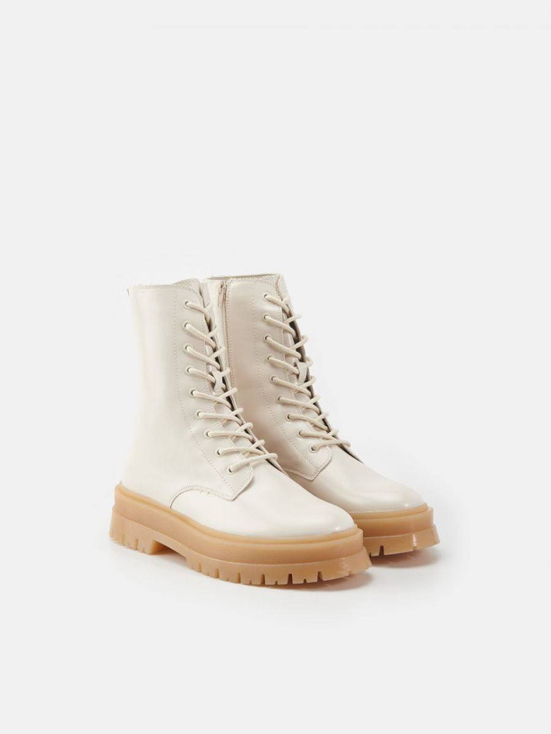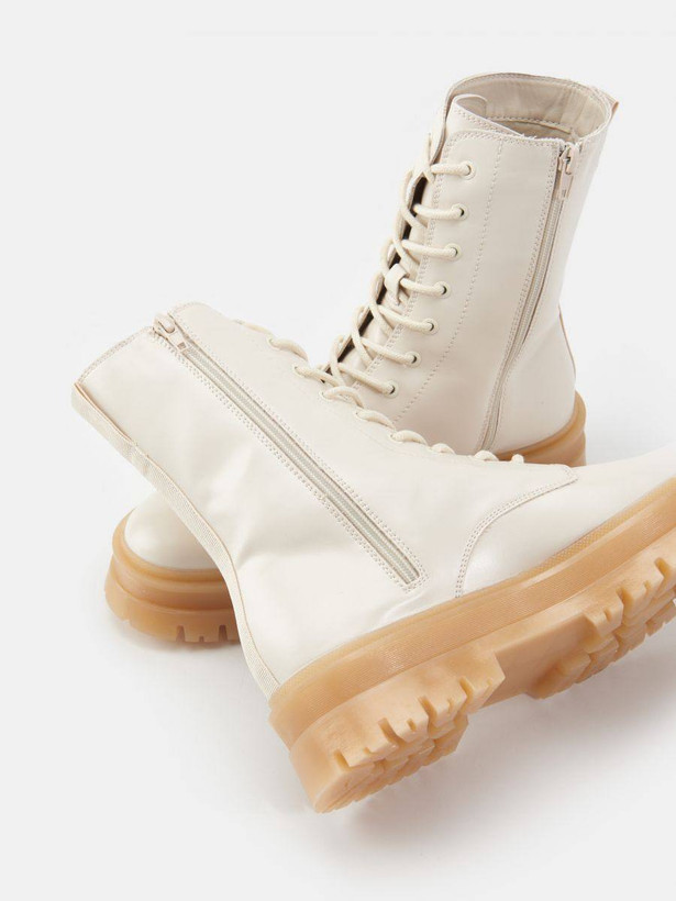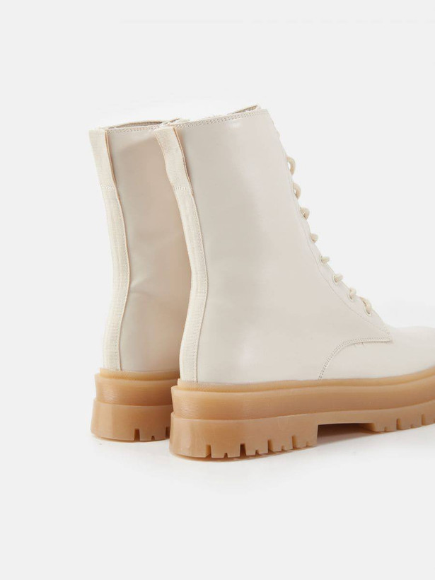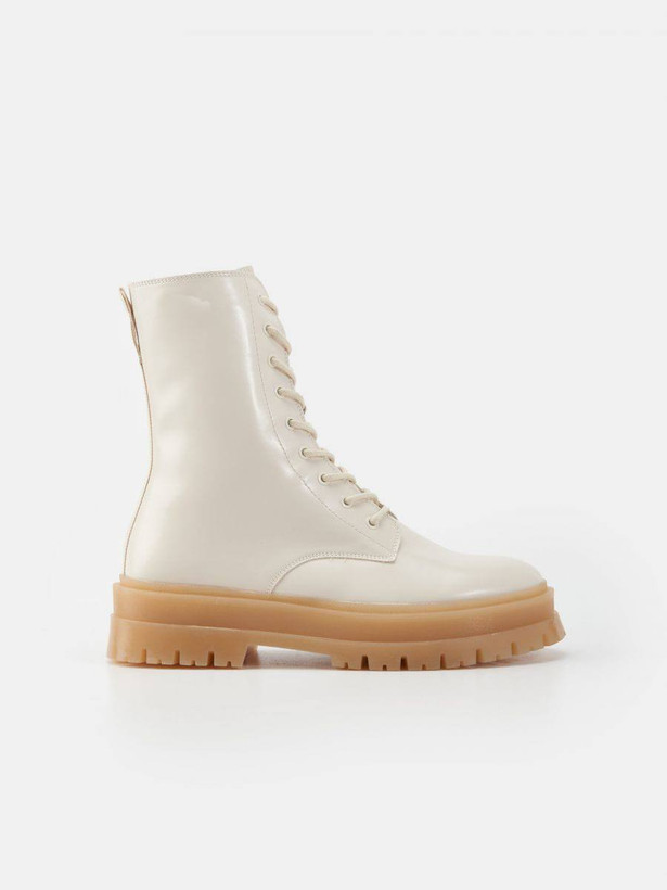 بوت چرم بلند کرم بغل زیپ دخترانه و زنانه