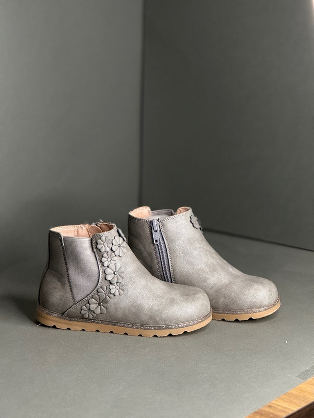 بوت بچگانه یک طرف کش و یک طرف زیپ گل دار انگلیسی
