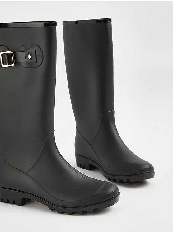 رین بوت مشکی ساده بند دار انگلیسی