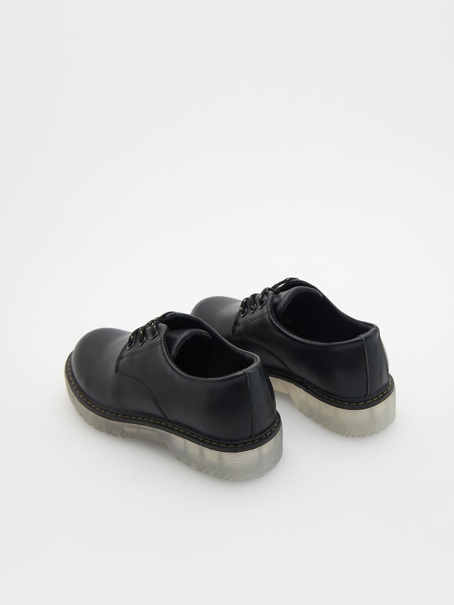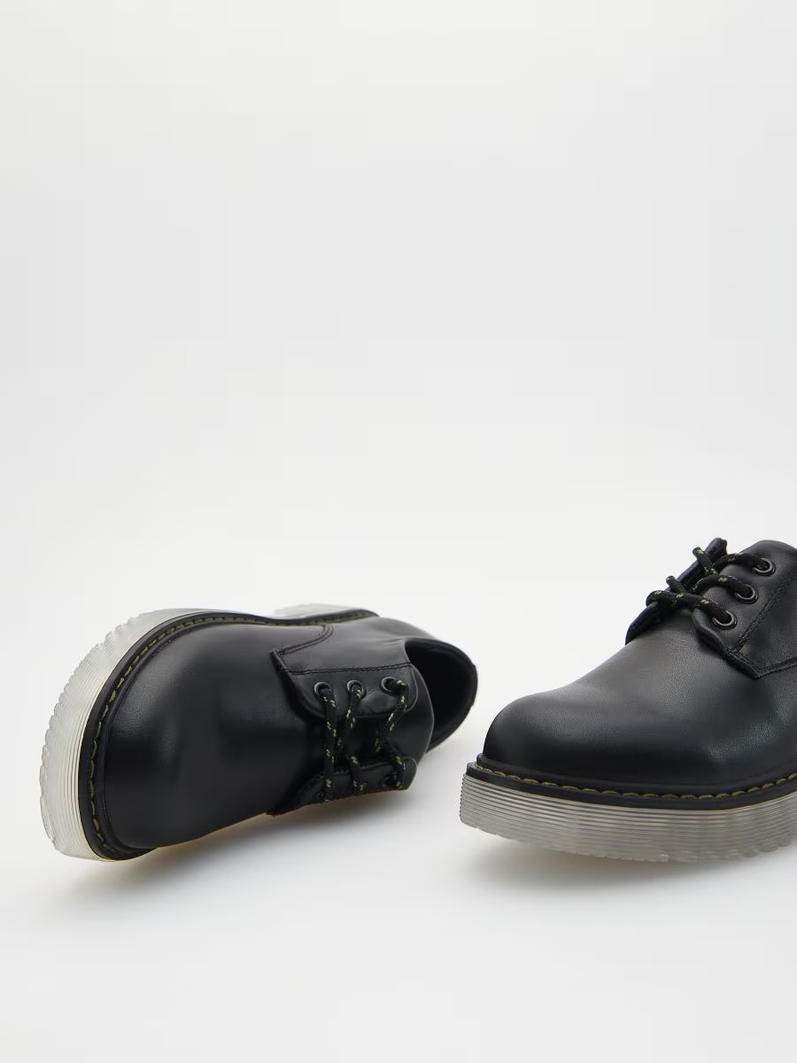 با الهام از طراحی محبوب Dr. Martens؛ رویه از چرم مصنوعی باکیفیت، زیرهی شفاف و مقاوم ضدلغزش.