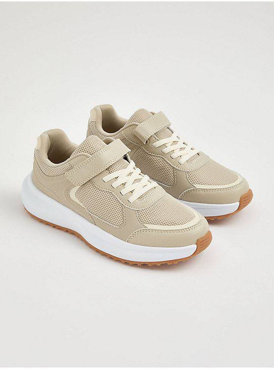 کتونی رانینگ توری کرم بند چسبی کفی نرم و راحت انگلیسی