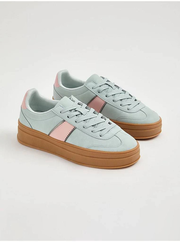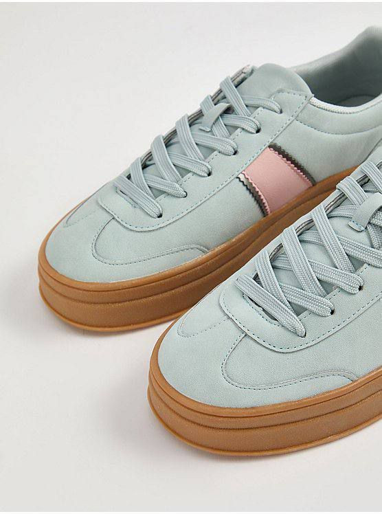 کتونی کژوال دو رنگ با زیره قهوه ای بندی انگلیسی