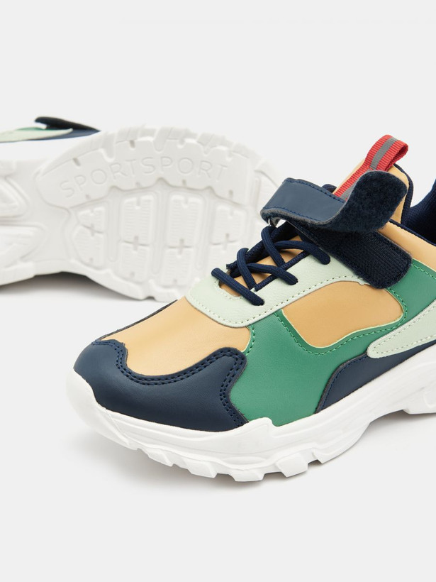 کتونی چند رنگ بند چسبی رویه چرم مصنوعی لهستانی